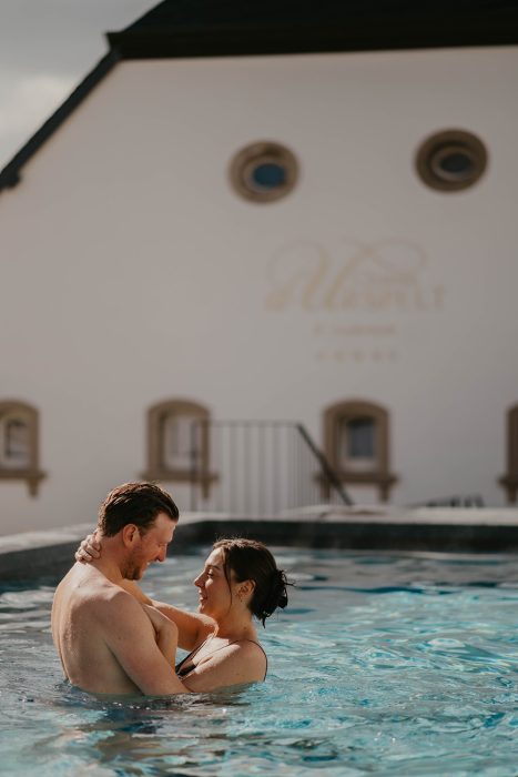 シャトーを一望できる屋外には、温水プールがあり、天気の良い日には、最高のリラクゼーションのひとときをお過ごしいただけます。
